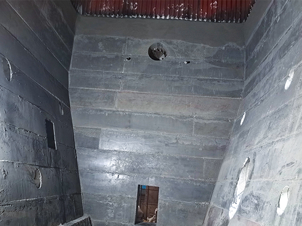 榮盛耐材施工人員正在施工 四川4x90循環(huán)流化床鍋爐內(nèi)襯維修現(xiàn)場 鍋爐內(nèi)襯不定形耐火材料施工效果 四川4x90循環(huán)流化床鍋爐···
