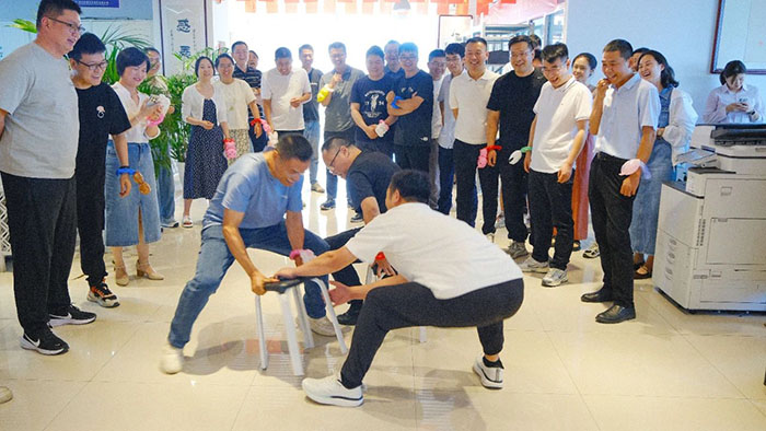 「你畫我猜」環(huán)節(jié),每隊(duì)派出精兵強(qiáng)將,接力作畫猜詞,只見(jiàn)畫筆在白板上快速游走,傳遞時(shí),隊(duì)員們都眉頭緊鎖、神情專注地思考,努力挖取線索,直到后一人喊出正確答案,全場(chǎng)爆發(fā)熱烈的掌聲,團(tuán)隊(duì)的默契在這一刻達(dá)到,隊(duì)員們捧著豐富的禮品都露出勝利的喜悅。