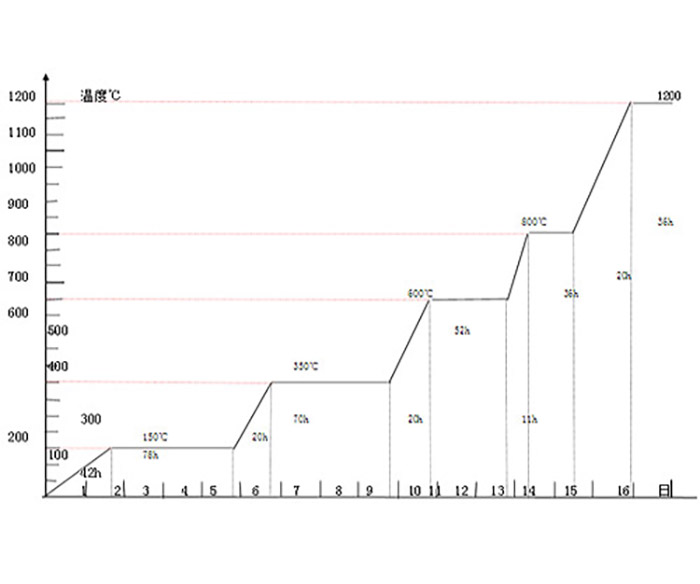 烘爐要根據(jù)耐火材料的性能和施工季節(jié),制訂烘爐曲線。烘爐曲線應(yīng)以溫度為縱坐標(biāo),時問為橫坐標(biāo),其主要內(nèi)容有:烘爐期限、升溫速度、恒溫時間、上限溫度、更換加熱系統(tǒng)的溫度。烘爐后需降溫的爐子。在烘爐曲線中應(yīng)注明降溫速度。既有耐火磚又有不定形耐火材料耐火材料的爐子,應(yīng)根據(jù)其耐火材料的材質(zhì)特點、主次關(guān)系制訂烘爐曲線。煙囪和煙道要先烘。采用耐火澆注料、可塑料、搗打料或噴涂料作為耐火材料的爐子,其烘爐曲線應(yīng)根據(jù)耐火材料的材質(zhì)及其厚度、成型工藝和烘烤方式制訂。
